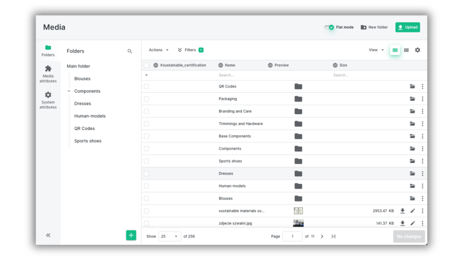 Example: We created a Sustainable Materials Sourcing certificate, uploaded it to Ergonode PIM, and added it to our products as an attribute called "sustainable_certification". It's another image that we would like to attach to our media library.