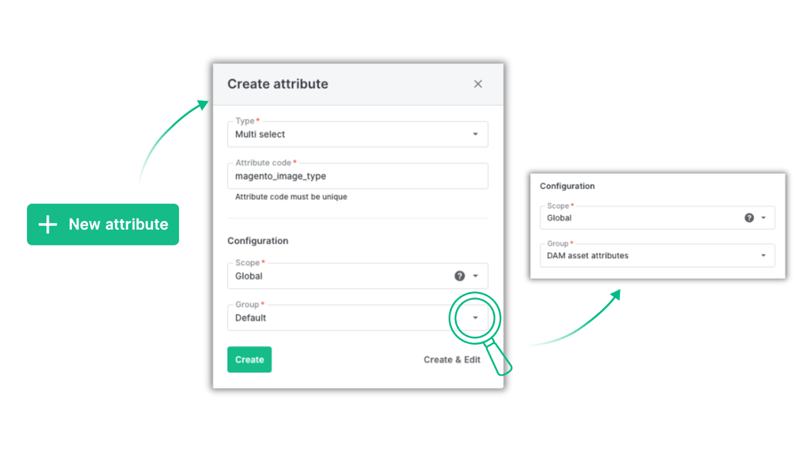 Tip: We also created an attribute group called “DAM attributes” to bring all new attributes into one subset.