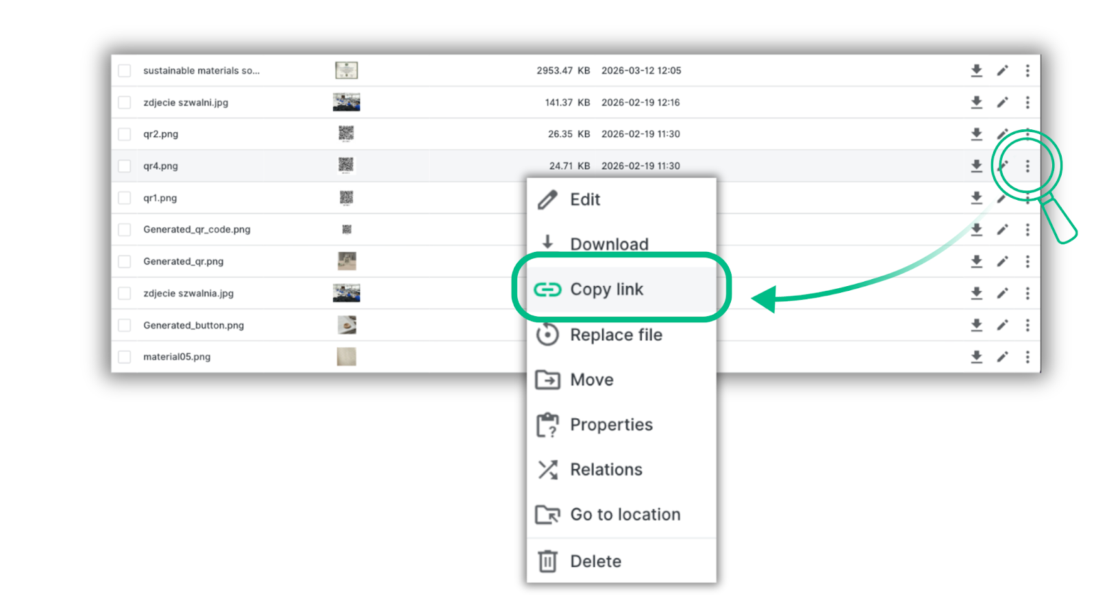 Just like in Content Management Systems, each file now has its own shareable URL. You can copy the link, send it to teammates, and they can download the file instantly.