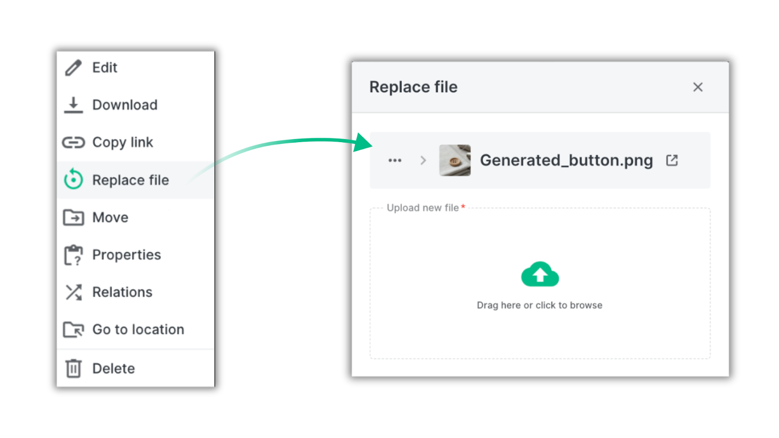 For example, you can update a certificate file while keeping all existing relations intact - products, other media files, categories, custom fields and automations.