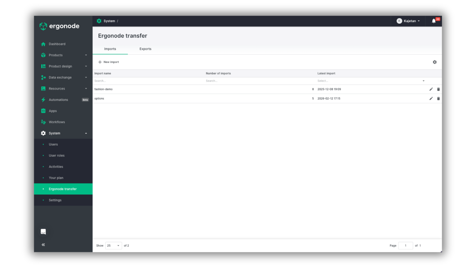To reflect its broader role in system management, we’ve moved Ergonode transfer to the System section. This change helps separate high-level environment migrations from everyday product data updates.