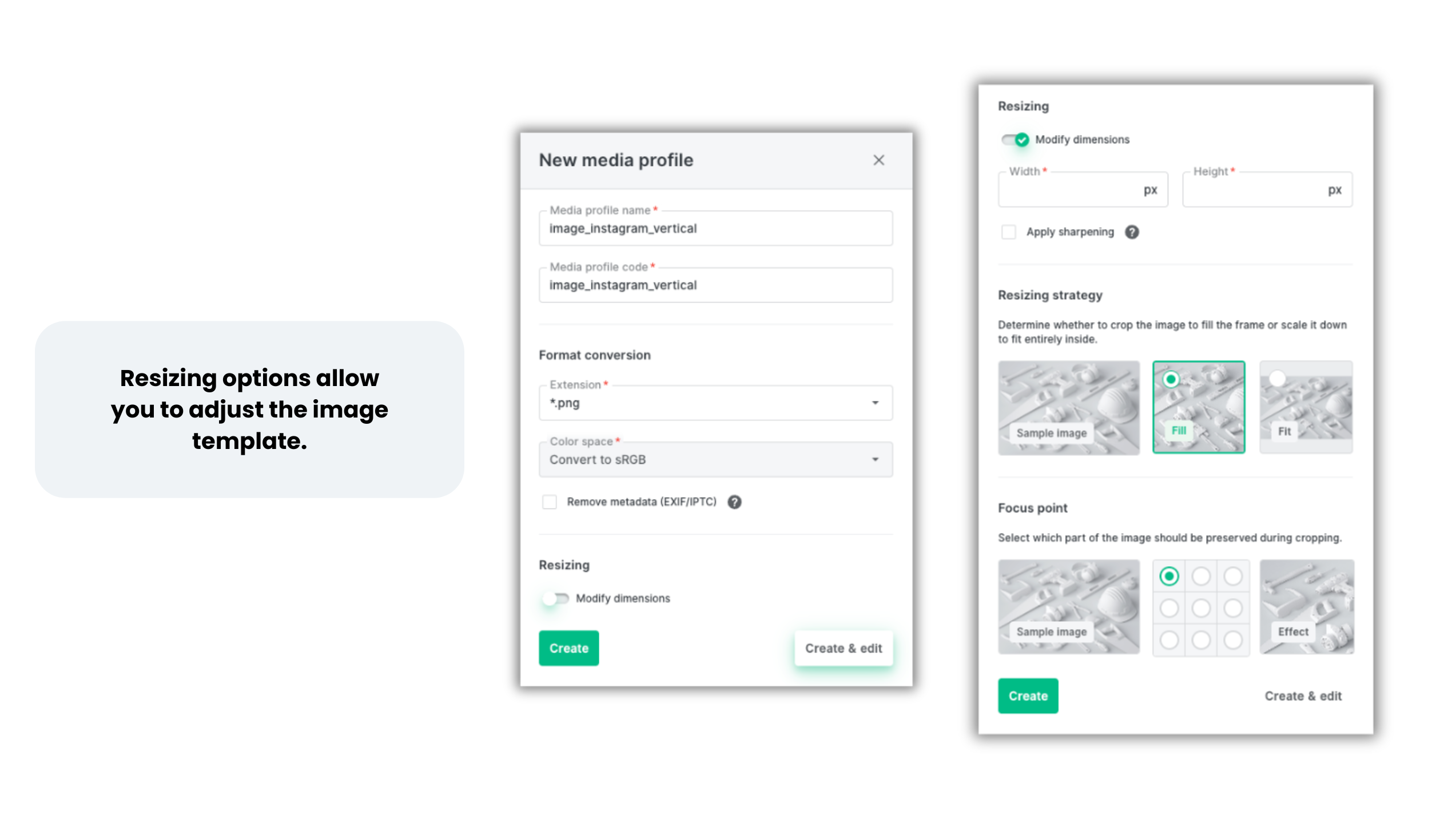 - Focus point — helps preserve the most important part of the image during cropping
