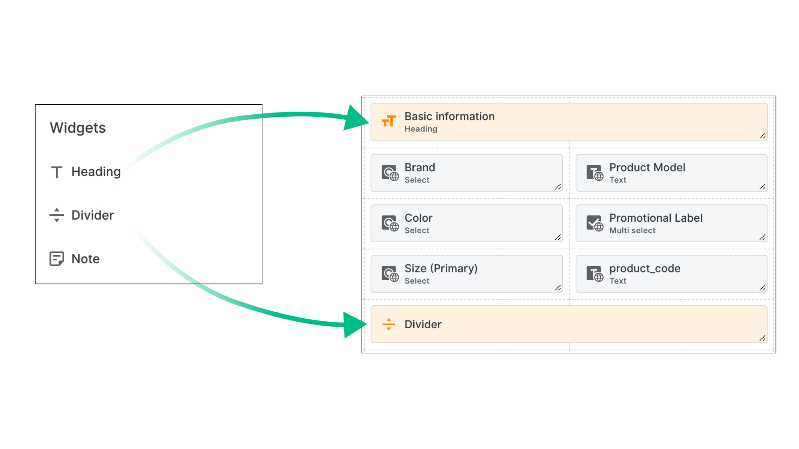 The Designer allows you to recreate the layout of your existing product pages, making attribute completion far more intuitive and understandable for product teams.