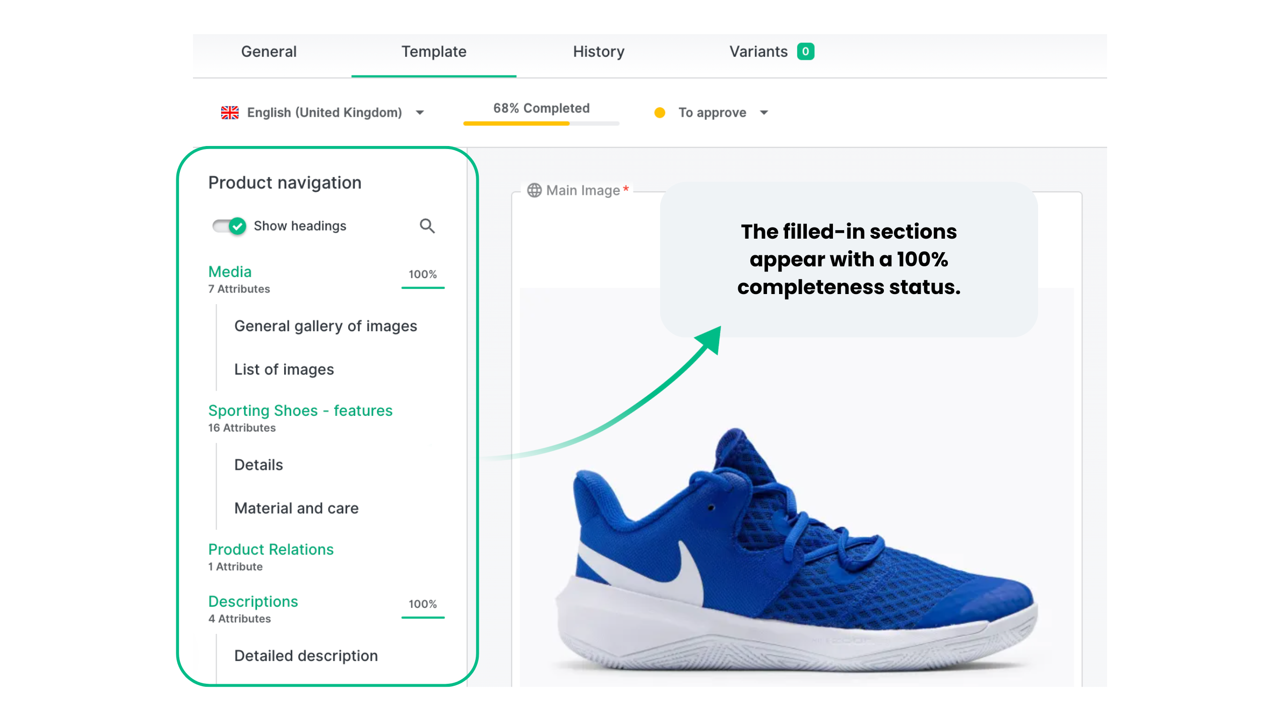 Automation can also be used to automatically populate attributes. For instance, in the running shoes example, certain technical parameters may imply additional product features — if the shoes are designed for outdoor running, automation can assign enhanced cushioning attributes.