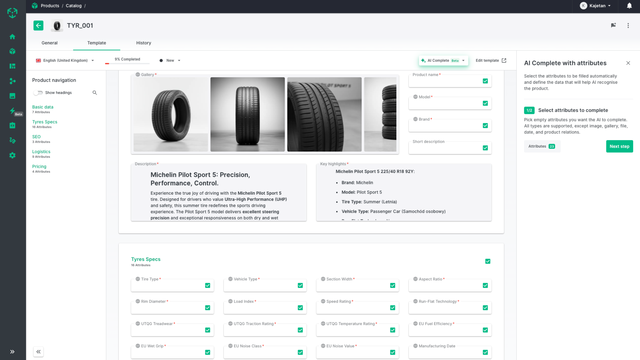 - masz już dane techniczne lub ERP w niektórych atrybutach produktu,